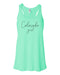 Sublimation Racerback!! We have entered the wonderful world of sublimation! This technique offers a design that becomes part of the material. In order to use sublimation, high percentage poly blend garments are required, which means SUPER SOFT RACERBACKS!! Sublimation gives a faded/vintage look a new modern edge in printing. We are excited, and we will never offer anything we aren't 110% confident and satisfied with.